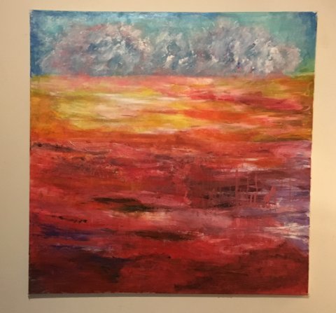 Dette billede malede jeg under min uddannelse. De japanske healings tegn er malet ind sådan lag på lag. vi lærte også at arbejde med farver og måske kan de 4 farvede bånd blå , gule, lyserøde og det rødviolette fornemmes