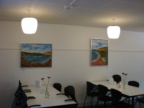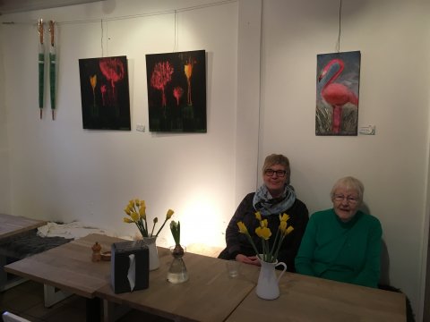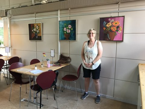 I foråret 2018 tog jeg tilløb og udstillede på hjemmebane i vores beboercafe. Det blev startskudet til, at vi fik etableret vores fælles maleværksted lidt senere på sommeren.